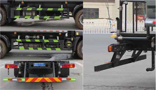 該車主要用于城鄉園林綠化噴灑;主要裝置為罐體及噴灑裝置;隨底盤選裝駕駛室,罐體總容量:11.63立方米;罐體有效容積:11.07立方米;罐體外形尺寸(長×長軸×短軸)(mm):5000×2350×1600,5000×2350×1520;ABS型號為CM4XL-4S/4M,生產廠家為廣州瑞立科密汽車電子股份有限公司;側、后防護材料均為:Q235碳鋼,連接方式均為:螺栓連接,后部防護截面尺寸(mm):120×50,后部防護離地高度(mm):470.僅采用底盤4500mm軸距改裝。選裝噴霧裝置樣式。選裝油箱電瓶安裝位置,選裝后部箭頭燈,選裝后部弧形噴灑裝置,選裝水炮支架位置,選裝高位花灑管道樣式,選裝自動球閥安裝位置。選裝后部樣式。選裝電子炮樣式,前伸500mm時,整車長度為8950mm,9100mm。