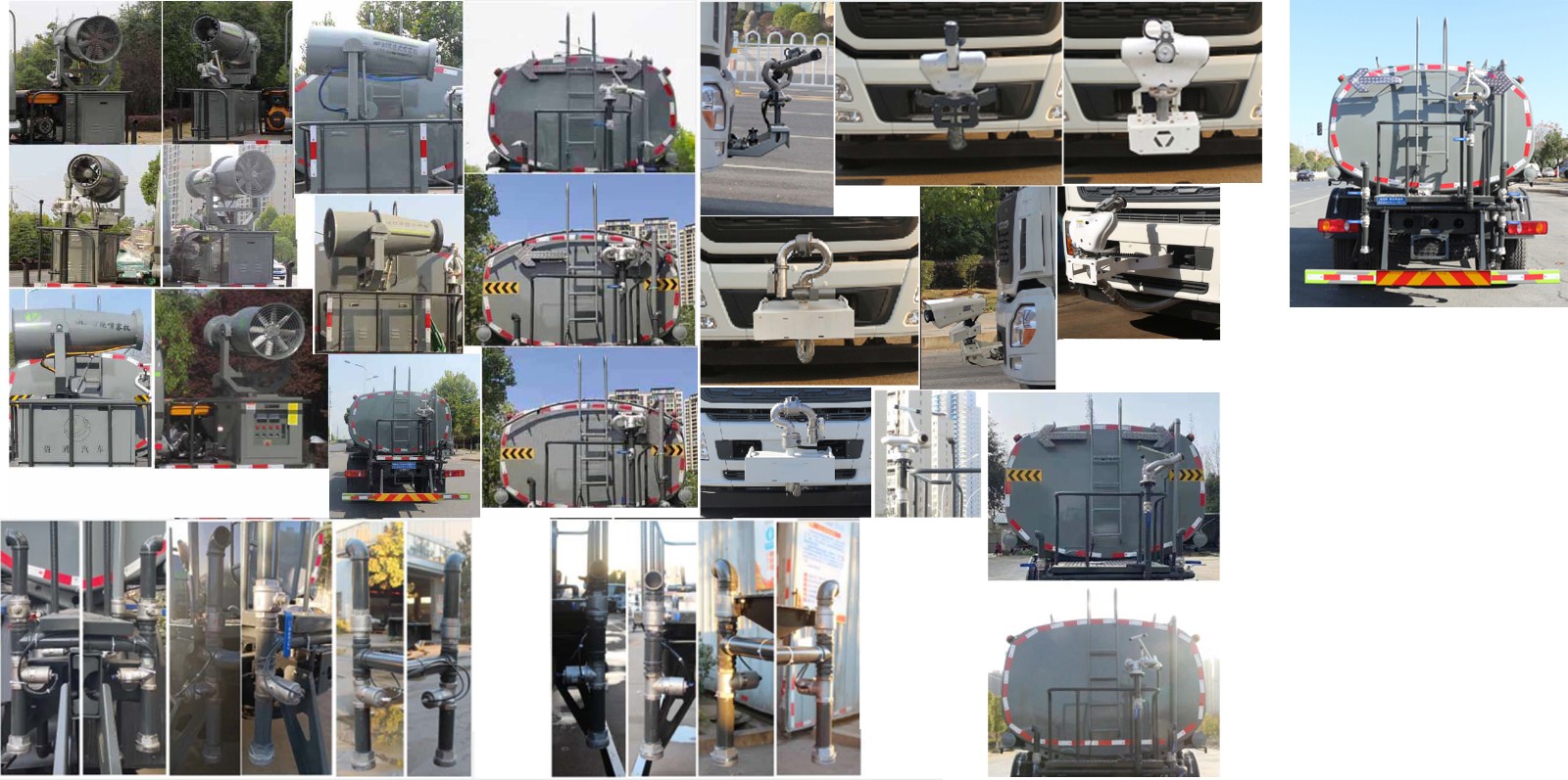 東風天錦15-16方灑水車上裝配置: 1、罐體約為 16 方,可加裝 30-40 型霧炮 2、邊燈帶電,罐體尾部上方標配 2 個紅色示寬燈, 3、標配前噴為鴨嘴直沖,標配后沖,用戶可根據自己的需求,來調 整對沖位置。 4、花紋防滑平臺,炮筒后蓋為定制型螺栓卡扣, 5、前噴、后沖、后灑、側噴,綠化高炮開關球閥均采用 50 大通經 不銹鋼球閥, 6、新式軸承式水炮,更加耐用, 7、60-90 型水泵, 8、防腐法蘭墊片, 9、鋁制后灑,不易炸開 10、罐體自動焊(美國林肯焊機及電源),拼板自動焊接,封頭環 縫焊接,無氣孔,焊縫美觀。 11、側護網、后保險杠、均為螺栓連接,方便拆卸,維修方便。 12、塑料擋泥板,替代鐵擋泥板,更加輕便,用螺栓連接,方便拆 卸。 13、前部、后部主管連接處為 6 孔圓法蘭,不易沖墊