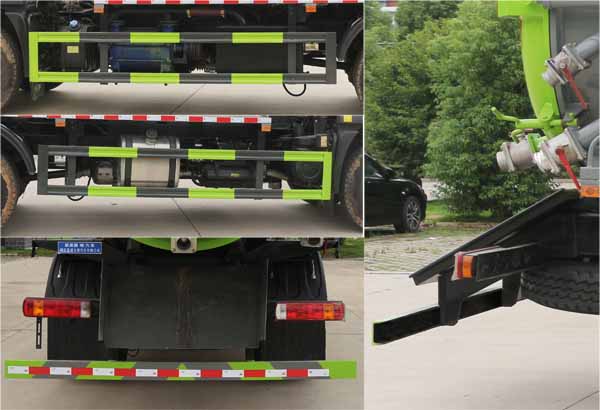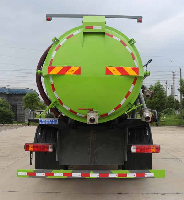 該車用于吸除水坑、下水道里污濁物;主要裝置有罐體及吸污泵總成;罐體總容量:11.55立方米,罐體有效容積:11立方米;罐體外形尺寸(總長×直徑)(mm):4800×1800;ABS控制器型號為CM4XL-4S/4M,ABS控制器生產企業為廣州瑞立科密汽車電子股份有限公司;側、后防護材料均為:Q235碳鋼,連接方式均為:螺栓連接,后部防護截面尺寸(mm):120×50,后部防護離地高度(mm):490.僅采用底盤3950mm軸距改裝.該車具有舉升功能,隨底盤選裝駕駛室,選裝后部出口樣式;選裝左側樣式,選裝油箱出口及電瓶位置。