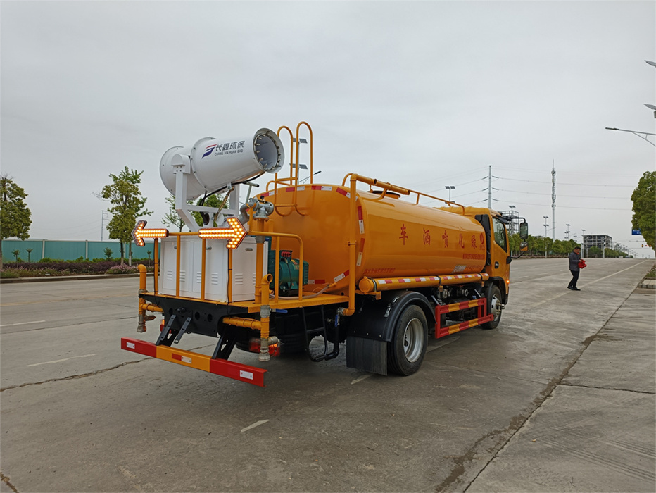 東風多利卡9方抑塵灑水車罐體約為 9 方,可加裝 30 型霧炮 2、邊燈帶電,罐體尾部上方標配 2 個紅色示寬燈, 3、標配前噴為鴨嘴直沖,標配后沖,用戶可根據自己的需求,來調 整對沖位置。 4、花紋防滑平臺,炮筒后蓋為定制型螺栓卡扣, 5、前噴、后沖、后灑、側噴,綠化高炮開關球閥均采用 50 大通經 不銹鋼球閥, 6、新式軸承式水炮,更加耐用, 7、40-50 型水泵, 8、防腐法蘭墊片, 9、鋁制后灑,不易炸開 10、罐體自動焊(美國林肯焊機及電源),拼板自動焊接,封頭環 縫焊接,無氣孔,焊縫美觀。 11、側護網、后保險杠、均為螺栓連接,方便拆卸,維修方便。 12、塑料擋泥板,替代鐵擋泥板,更加輕便,用螺栓連接,方便拆 卸。 13、前部、后部主管連接處為 6 孔圓法蘭,不易沖墊