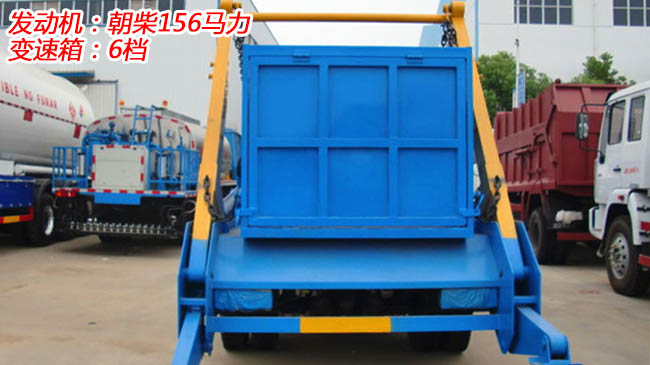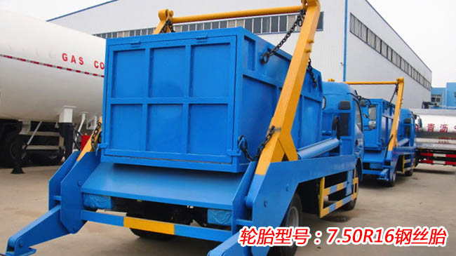 東風多利卡擺臂式垃圾車,多利卡D7底盤,6檔變速箱,朝柴156馬力發動機,前橋2.5噸、后橋5噸,192mm變截面車架,7.50R16鋼絲胎,帶斷氣剎、ABS。