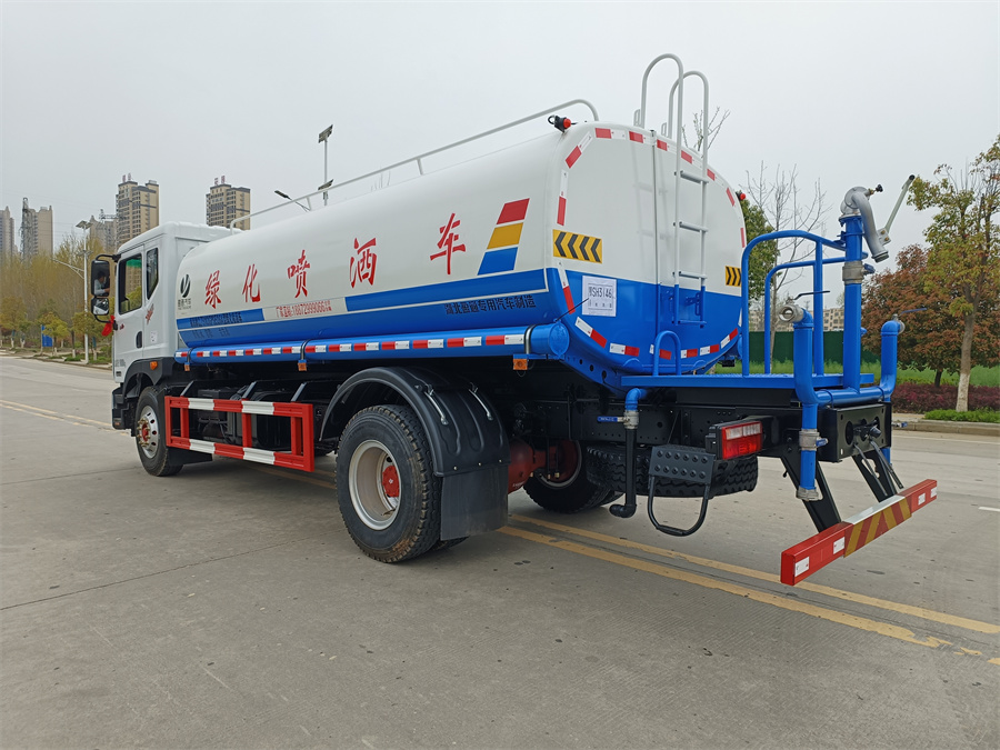 我公司產(chǎn)品標(biāo)配前噴(鴨嘴)、后沖、后灑、側(cè)噴、后置式工作 平臺(tái),平臺(tái)上配置綠化水炮(可 360°旋轉(zhuǎn),既可以調(diào)成柱狀,也可 以調(diào)成霧狀,更可以調(diào)成直沖狀、大雨、中雨、小雨、毛毛雨),配 備優(yōu)質(zhì)大功率專用灑水泵(可自吸自排,可從河里或池塘抽水到罐體), 取力器,雜物過濾網(wǎng),消防接口,自流球閥系統(tǒng)、取力器、球閥、濾網(wǎng) 均為國家標(biāo)準(zhǔn)產(chǎn)品,主管道加粗,法蘭墊、法蘭盤加厚,大通徑球閥。 整體具備性能優(yōu)良安全可靠、效率高、流量大、維修方便等特點(diǎn)