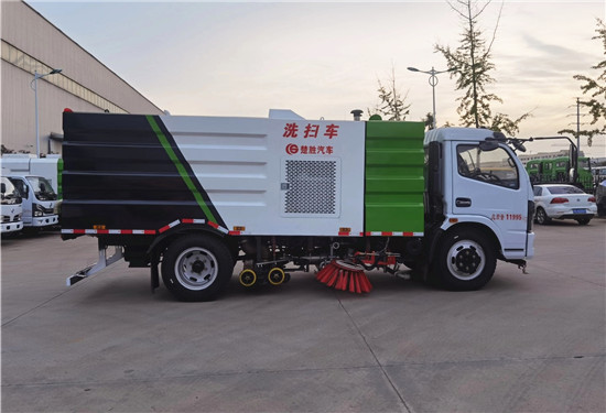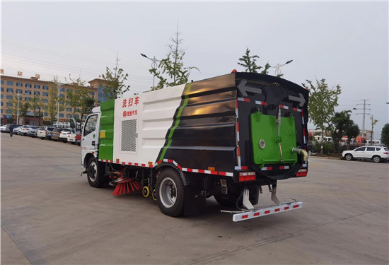 洗掃車改裝部分具有路面清洗、路面清掃、路緣清洗、路緣和路緣石立面洗刷、低壓沖洗、噴霧除塵等多功能;選擇“全洗掃”模式清洗廣場和路面,清洗效率高效果好,洗凈率達90%以上,選擇“左洗掃”或“右洗掃”模式清洗路面和路緣、洗刷路緣石立面;需要進行路面清掃或路面保潔作業時,可選擇掃路模式;需要噴霧除塵時,可開啟噴霧裝置,進行噴霧除塵作業;還可以像灑水車一樣對路面進行低壓沖洗作業。