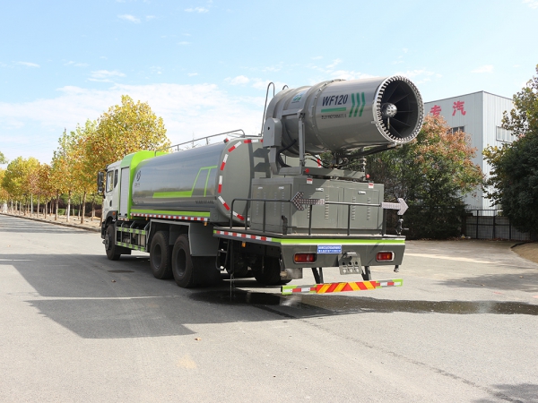 東風(fēng)大型灑水車-抑塵車上裝配置: 1、罐體約為 17 方,可加裝 60-120 型霧炮 2、邊燈帶電,罐體尾部上方標(biāo)配 2 個(gè)紅色示寬燈, 3、標(biāo)配前噴為鴨嘴直沖,標(biāo)配后沖,用戶可根據(jù)自己的需求,來調(diào) 整對(duì)沖位置。