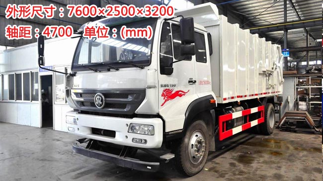 容積15~17立方米,根據軸距的不同,尺寸也有所區別,箱體形狀方形,材質邊4底4碳鋼,箱體后門液壓開啟,油缸舉升自卸,頂部標配密封,可選裝頂蓋液壓側開啟、前劃開啟。