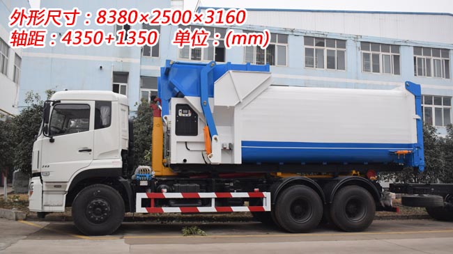 配15~20立方米勾臂式垃圾箱,也可配12~15立方米聯體壓縮垃圾箱,主勾臂采用高強度材質打造,雙杠液壓,可加裝后液壓支腿。