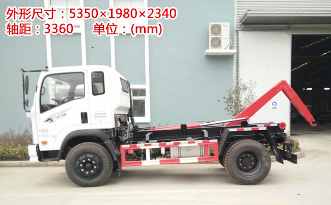 配套5~6立方米勾臂垃圾箱,高強度主勾臂,雙液壓油缸,采用國產(chǎn)油泵、多路閥、油缸,駕駛室外操作,尾部帶滾輪,箱體鎖緊裝置,鎖緊后可實現(xiàn)垃圾車自卸。