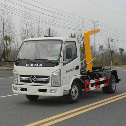 凱馬4-5方鉤臂垃圾車又稱車廂可卸載式垃圾車、拉臂式垃圾車,該車廣泛適用與城市街道學校垃圾處理,可一車配備多個斗,各個垃圾點放置多個垃圾斗,帶自卸功能,液壓操作,方便傾倒。該車的箱體部分完全由液壓系統來控制,在平日里可將車載垃圾箱放置到各個垃圾收集站,待垃圾收集滿后,該車可直接開赴至垃圾站,通過液壓系統的操控,可將垃圾車后座上加裝的鉤臂放下,掛住站內垃圾箱前端的連接點,將垃圾箱拉至車體的后座上,此時即可啟動車輛,將垃圾運送至垃圾處理站內,進行自卸式傾倒。