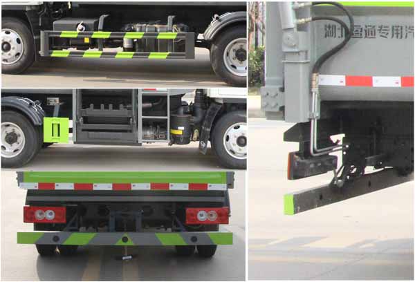 縱昂牌CLT5043ZZZBJ6型自裝卸式垃圾車該車專用裝置為垃圾箱體、提升機構,主要用于垃圾的收集,轉運作業.ABS系統控制方式為4S/4M,氣剎:ABS型號為CM4XL-4S/4M,生產廠家為廣州瑞立科密汽車電子股份有限公司.液剎:ABS型號為CM4YL,生產廠家為廣州瑞立科密汽車電子股份有限公司.側、后防護材料均為:Q235碳鋼,側防護連接方式為:螺栓連接,后防護連接方式為:焊接連接,后部防護截面尺寸(mm):100×50,后部防護離地高度(mm):390.該車選裝直接供電式ETC車載裝置;隨底盤選裝新前格柵及新logo.選裝新前圍.選裝箱體側面樣式.僅采用底盤2850mm軸距改裝.發動機/油耗申報值(L/100km)為:Q23-115E60/11.12,Q23-115C60/11.31.該車整備質量包含隨車工具.貨箱質量:1390kg,1555kg.貨箱材質:Q235;貨箱底板厚度:3mm,左右前后側板厚度:3mm.選裝箱體及后部結構樣式.