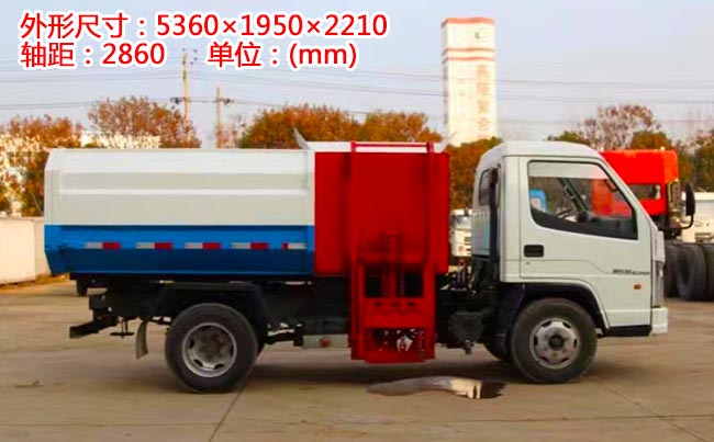 容積3~4立方米,密封式箱體結構,頂部前端有進料箱蓋,箱體尾部有后開門,手動機械鎖緊,掛桶裝置位于箱體右側,采用國產液壓系統、多路閥、油缸、高壓軟管、液壓油箱、濾油器、通過這些組合實現專用功能。