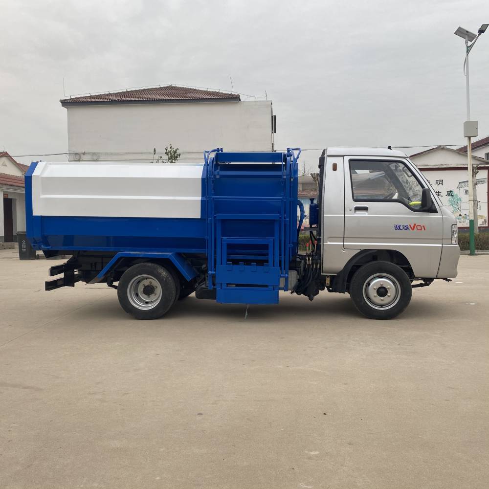 小型掛桶垃圾車-福田藍(lán)牌3方掛桶垃圾車