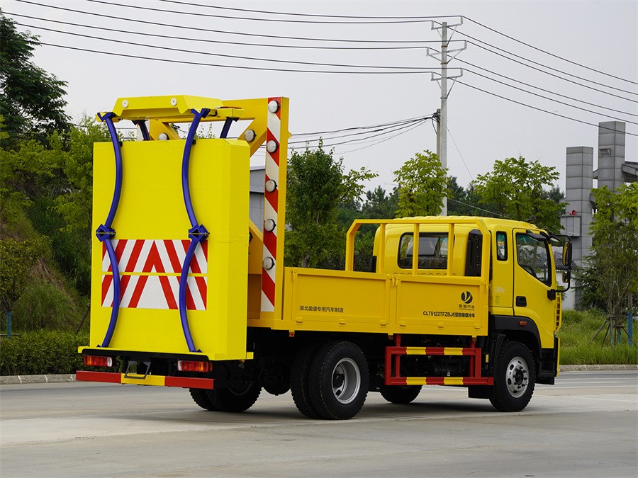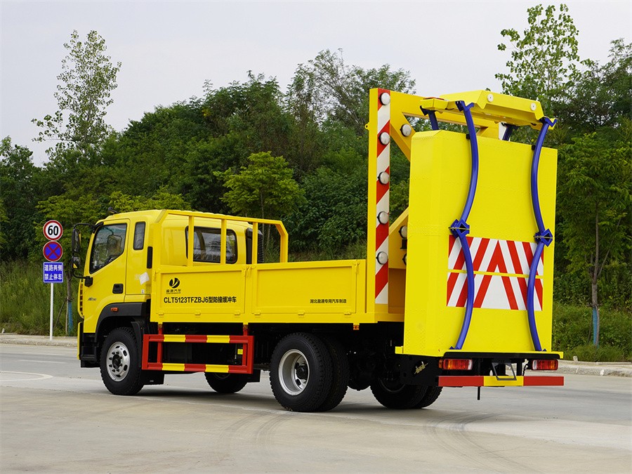 高速公路防撞緩沖車該車專用裝置為:車載式緩撞裝置,主要用于移動施工、臨時性封閉車道或交通事故處理及搶險現場,降低城市道路施工、高速公路養護等作業中的安全問題;側、后部防護材料均為:Q235碳鋼,側防護采用螺栓連接,后防護采用焊接連接;后部防護截面尺寸(mm):120×50,后部防護離地高度(mm):380;ABS系統型號:ABS-E;生產企業:威伯科汽車控制系統(中國)有限公司.ABS系統型號:ABS-VI.E;生產企業:廣州瑞立科密汽車電子股份有限公司;ABS系統型號:3550D-1010;生產企業:東科克諾爾商用車制動系統(十堰)有限公司,ABS系統型號:CM4XL-4S4M,生產企業:廣州瑞立科密汽車電子股份有限公司.僅采用底盤3950mm軸距改裝,后軸僅采用鋼板彈簧懸架改裝;隨底盤選裝限速裝置,限速89km/h或者90km/h;后部作業燈具僅在車輛駐車作業時開啟。隨底盤選裝駕駛室.