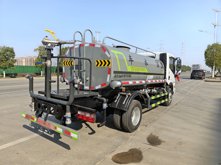 底盤(pán)部分:東風(fēng)多利卡灑水車(chē)原裝底盤(pán),全柴140馬力四缸國(guó)六排放柴油發(fā)動(dòng)機(jī),萬(wàn)里揚(yáng)6檔變速箱,7.00R16鋼絲胎, 中控鎖,電動(dòng)玻璃,ABS,原廠空調(diào),上裝部分:罐體容積約5立方米, 罐體材質(zhì)為Q235碳鋼板材卷壓成型(罐體采用機(jī)械臂自動(dòng)化焊接),采用40-50大功率水泵,帶自吸自排功能, 整車(chē)功能:灑水車(chē)配備前沖(鴨嘴式),后對(duì)沖、后灑、側(cè)噴、綠化高壓水炮,配備消防接口、自流口、音樂(lè)喇叭, 兩根吸水管,此車(chē)為國(guó)六車(chē)型,上戶免購(gòu)置稅,供方提供上戶手續(xù)。