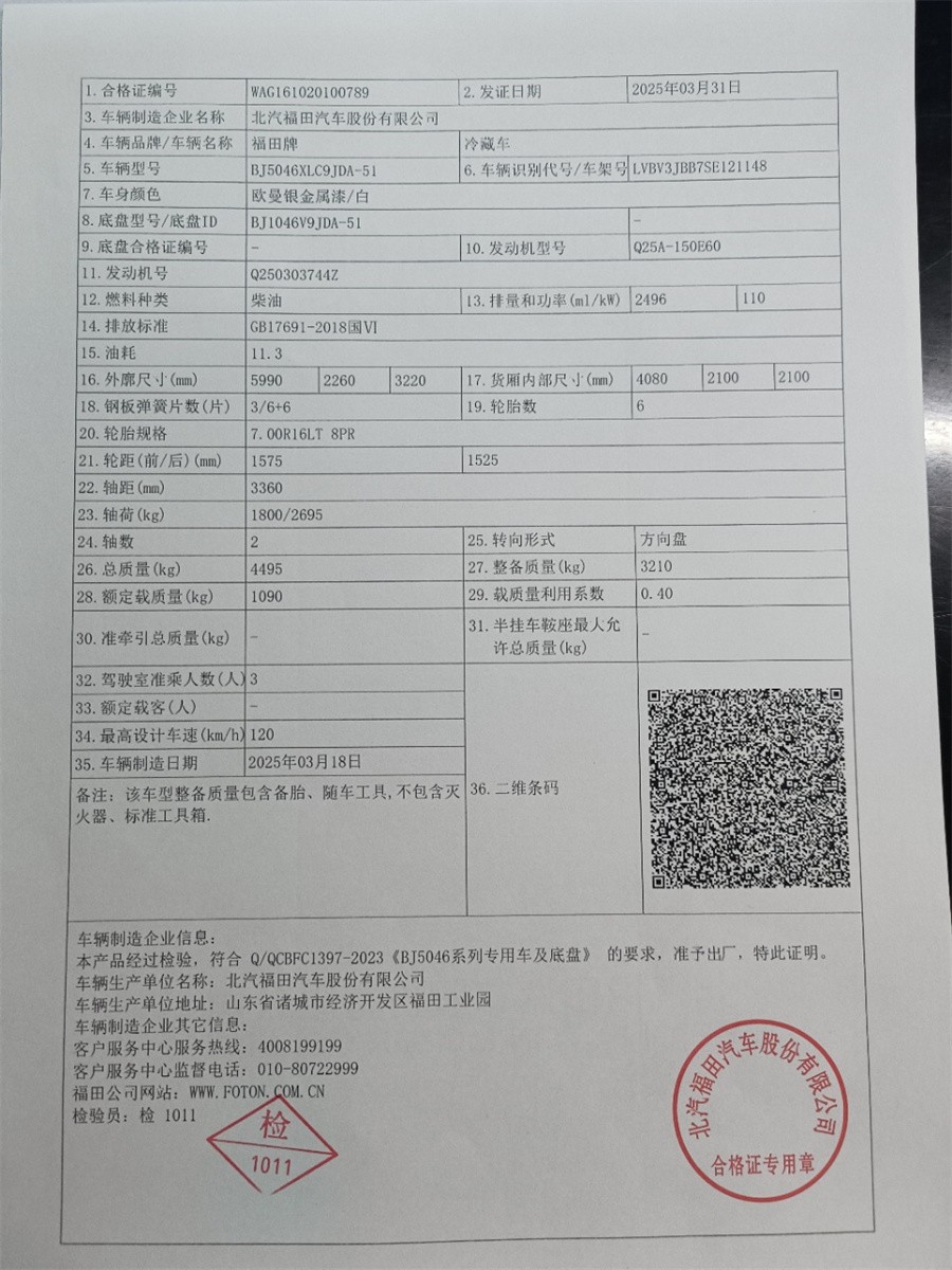 1900駕駛室,3360軸距,Q25A-150E60發動機(扭矩405NM),5檔變速箱,5噸后橋,7.00R16鋼絲胎,170×55×5車架,空調、中控鎖電動門窗,多功能方向盤、巡航。