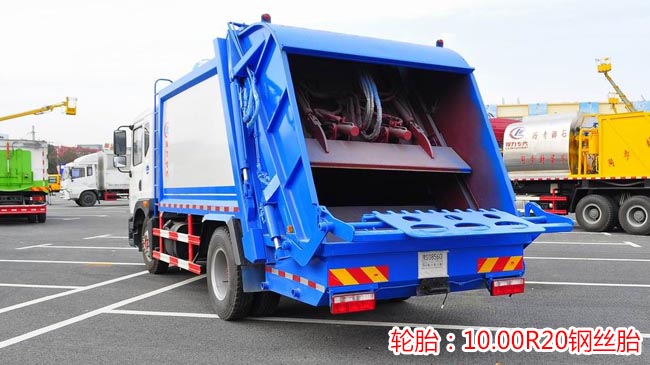 新款平面弧形廂體,廂體材料為武鋼優質碳鋼,外箱尺寸:8620×2520×3200mm,有效壓縮容積12立方,采用邊四底四優質鋼板制作,國內知名品牌博利液壓油缸,杰特油管,揚州中梅多路閥,皖液齒輪油泵,西門子PLC電控開關。壓縮式垃圾車采用機電液一體化技術,借助機、電、液聯合自動控制系統、電腦控制、手動操作系統,通過填裝器和推鏟等專用裝置,實現垃圾倒入、壓碎或壓扁、強力裝填,把垃圾擠入車廂并壓實和推卸,污水全部進入污水收集箱,解決了垃圾運輸過程中的二次污染的問題。壓縮式垃圾車具有自動反復壓縮以及蠕動壓縮功能,壓縮比高、密封性好、裝載量大﹑操作方便、環保性好﹑整車利用功率高等優點。