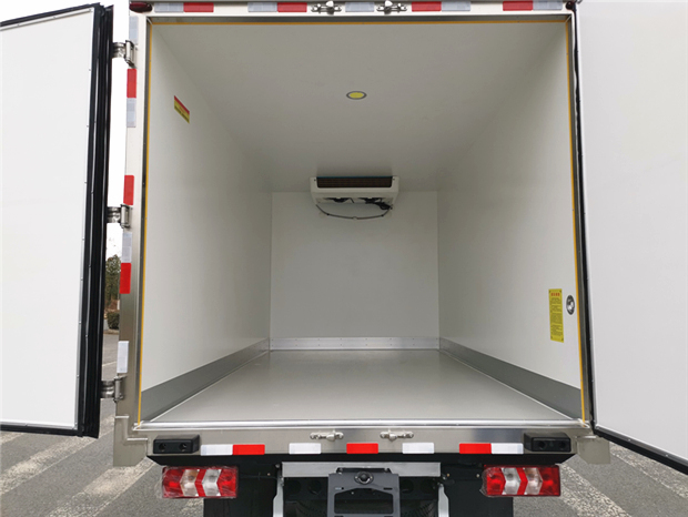 國六江淮駿鈴V5藍(lán)牌冷藏車廂體配置為:采用斷橋隔熱工藝,整體框架結(jié)構(gòu)制作,廂體內(nèi)、外壁材料為玻璃鋼板,采用高密度保溫層,廂板內(nèi)帶有骨架,廂體厚度80mm,門框,門飾件、包角全部使用不銹鋼材質(zhì)。最新款鋁合金包邊型材,廂體內(nèi)采用LED照明燈及廂體示寬燈;門框密封條為橡膠材質(zhì),后門梁帶加厚防撞塊,加厚型不銹鋼鉸鏈及鎖件。車體副梁采用510L高強(qiáng)度鋼制作,底板為鋁花紋板,車廂后門帶一個(gè)上車扶手,其余標(biāo)配;
