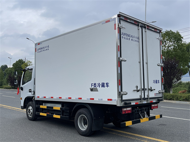 東風(fēng)新能源冷藏車廂體配置為:采用斷橋隔熱工藝,整體框架結(jié)構(gòu)制作,廂體內(nèi)、外壁材料為玻璃鋼板,采用高密度保溫層,廂板內(nèi)帶有骨架,廂體厚度80mm,門(mén)框,門(mén)飾件、包角全部使用不銹鋼材質(zhì)。最新款鋁合金包邊型材,廂體內(nèi)采用LED照明燈及廂體示寬燈;門(mén)框密封條為橡膠材質(zhì),后門(mén)梁帶加厚防撞塊,加厚型不銹鋼鉸鏈及鎖件。車體副梁采用510L高強(qiáng)度鋼制作,底板為鋁花紋板,車廂后門(mén)帶一個(gè)上車扶手,其余標(biāo)配;
