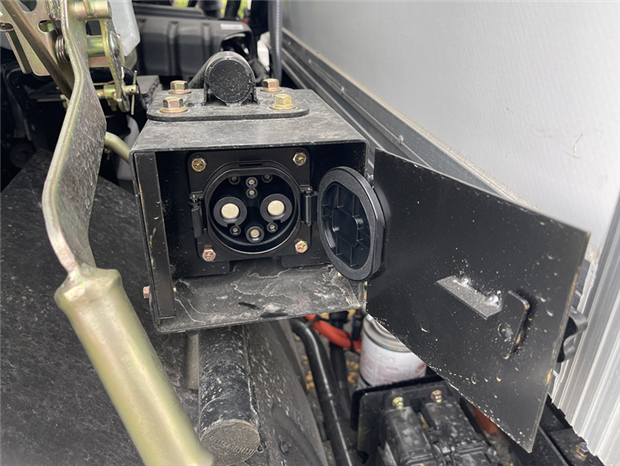 東風(fēng)新能源冷藏車充電口。