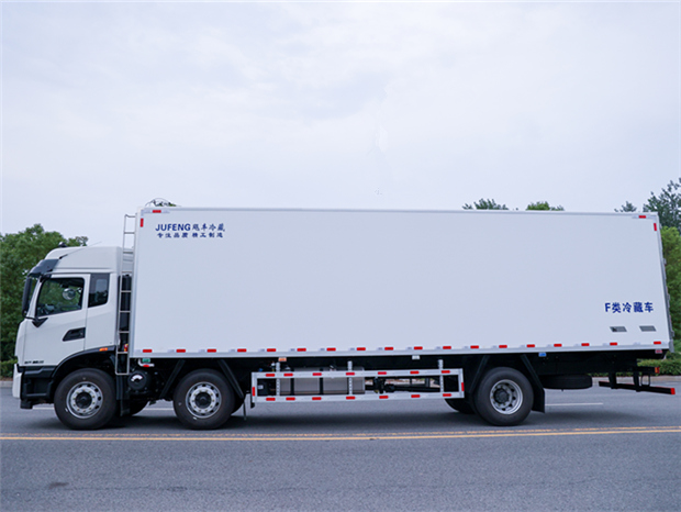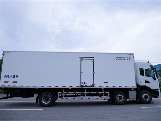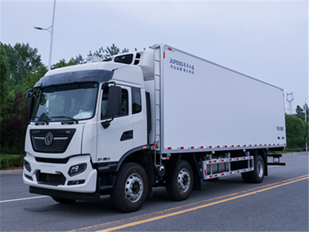 東風(fēng)天錦8米6冷藏車基本參數(shù):整車外形尺寸:9150,9900,10800,12000×2600×3990mm,車廂凈空尺寸可選為:6800,7680,8580,9680×2440×2450mm,車廂容積約為40,46,51,57立方,總質(zhì)量為:25000Kg,整備質(zhì)量為:10440Kg,額定質(zhì)量為:14805Kg.國六東風(fēng)柴油發(fā)動(dòng)機(jī),7.5L排量,300馬力發(fā)動(dòng)機(jī),陜齒9檔變速箱,整車型號為:DFH5240XLCE。