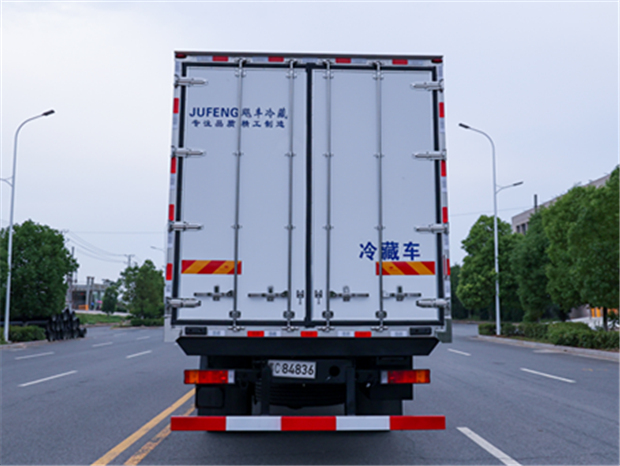 東風(fēng)天錦8米6冷藏車廂體配置為:斷橋隔溫工藝,整體結(jié)構(gòu)框架,內(nèi)外面料為3mm新款啞光玻璃鋼夾保溫層真空復(fù)合而成,廂體厚度為8cm,最新款鋁合金包邊型材,型材局部厚度為4mm(鋼制鉚釘加固),廂體內(nèi)部采用2個(gè)LED照明燈及廂體示寬燈,后門框不銹鋼材質(zhì),門框密封條為三元乙丙橡膠材質(zhì),加厚型不銹鋼合頁及鎖件;副梁為Q700車用大梁鋼,15mm厚大梁墊皮,加裝防撞膠塊,不銹鋼門鎖件,配后雙開門,副駕駛一側(cè)居中靠前開單側(cè)門一個(gè),帶2個(gè)排水孔。