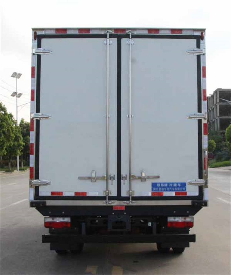 東風(fēng)4.2米冷藏車該車用于冷藏運(yùn)輸?shù)膸狡?裝備有隔熱結(jié)構(gòu)的車廂和制冷裝置;貨廂頂部封閉,不可開啟.側(cè)/后下部防護(hù)裝置材料:Q235碳鋼,連接方式均為螺栓連接;后下部防護(hù)截面尺寸(mm):100×50,離地高度:450mm.ABS型號(hào):ABS/ASR-24V-4S/4M,廠家:襄陽東風(fēng)隆誠機(jī)械有限責(zé)任公司.發(fā)動(dòng)機(jī)型號(hào)/油耗申報(bào)值(L/100km)對(duì)應(yīng)關(guān)系為:ZD30D16-6N/11.5,YCY24140-60/11.3,Q28-130E60/11.2,YCY30165-60/11.3,Q23-115E60/11.1,Q23-136E60/10.9.該車選裝直接供電式ETC車載裝置.選裝同等功率制冷機(jī)組,外觀形狀可不同.該車型整備質(zhì)量包含隨車工具,不包含備胎.貨廂重量為850kg,底板材質(zhì)為玻璃鋼板+擠塑板,厚度為80mm,側(cè)板材質(zhì)為玻璃鋼板+擠塑板,厚度為80mm.整車長度/前懸/后懸對(duì)應(yīng)關(guān)系(mm):5998/1061(1035,1021)/1629(1655,1669),5995/1061(1035,1021)/1626(1652,1666).隨底盤選裝駕駛室,選裝廂體側(cè)面及后部樣式.