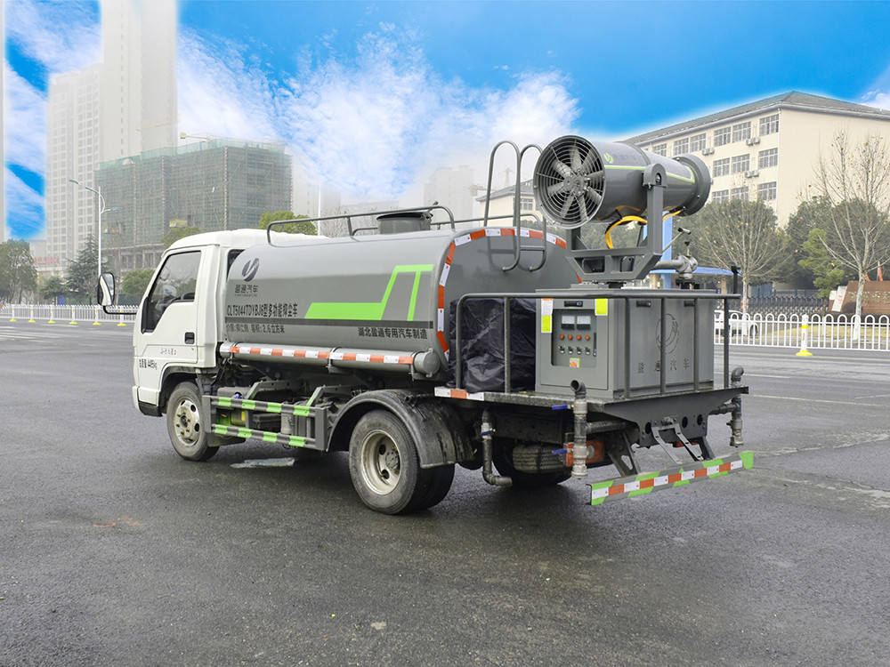 縱昂牌 CLT5044TDYBJ6A 型多功能抑塵車標(biāo)配后對沖、后灑、側(cè) 噴、后置式工作平臺(tái),平臺(tái)上配置綠化水炮可 360°旋轉(zhuǎn),既可以調(diào)成柱狀, 也可以調(diào)成霧狀),配備優(yōu)質(zhì)大功率專用灑水泵,可自吸自排,可從河里或池 塘抽水到罐體,取力器,雜物過濾網(wǎng),消防接口,自流球閥系統(tǒng)、取力器、球 閥、濾網(wǎng)均為國家標(biāo)準(zhǔn)產(chǎn)品,主管道加粗,法蘭墊、法蘭盤加厚,大通徑球閥。 整體具備性能優(yōu)良安全可靠、效率高、流量大、維修方便等特點(diǎn)。