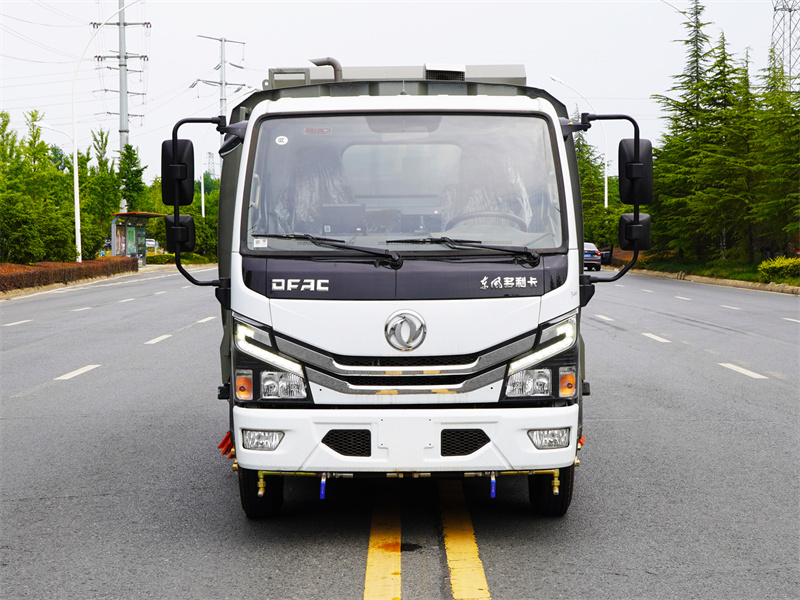 東風多利卡洗掃車采用洗,掃,吸,混合的方式收集垃圾,濕式除塵、電液 PLC 一鍵控制,液壓傾翻卸料的作業方式對路面進行清掃作業。