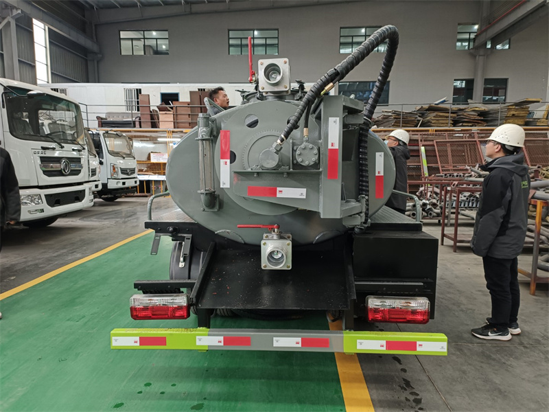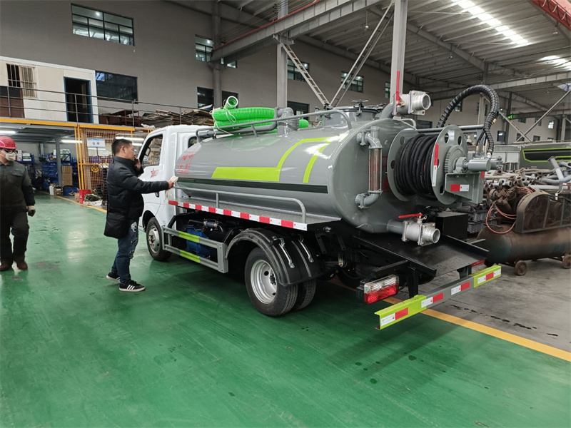 藍牌小型清洗吸污車。一體罐,容積3.4立方,水污互通,(配山東SK-6水循環泵,或配億豐3噸油泵帶油水分離器) 品孚130L流量高壓泵,防溢閥,視污管,罐體后上一個100球閥吸口,帶60米19高壓管,罐體尾部視污管,罐體后部一個100排污閥,8米吸污管一根