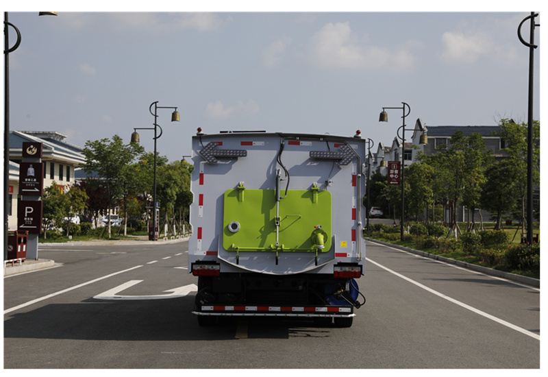 6)具備倒車保護裝置,在作業過程中如遇緊急倒車,智能化的控制系統會自動停止作業并收回掃盤、吸盤和側噴桿;具有防止舉升垃圾箱翻車保護;具有檢修安全保護。
