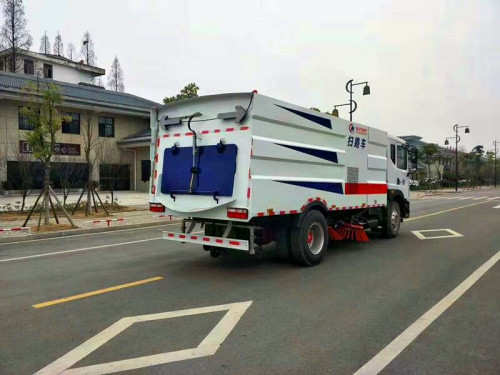 3.5立方水箱、6立方不銹鋼垃圾箱,中置4掃盤、后置吸盤、三洋馬達、康明斯副發動機、施耐德控制開關、海普瑞思電磁閥組、無極變速自動離合器、免維護離心式風機、不銹鋼垃圾箱、北極星電子水泵、垃圾箱舉升自卸、尾部LED箭頭燈、手動泵應急系統?蛇x裝前沖后灑、垃圾箱自潔功能、倒車影像作業監控、前置雪鏟、掃雪滾。