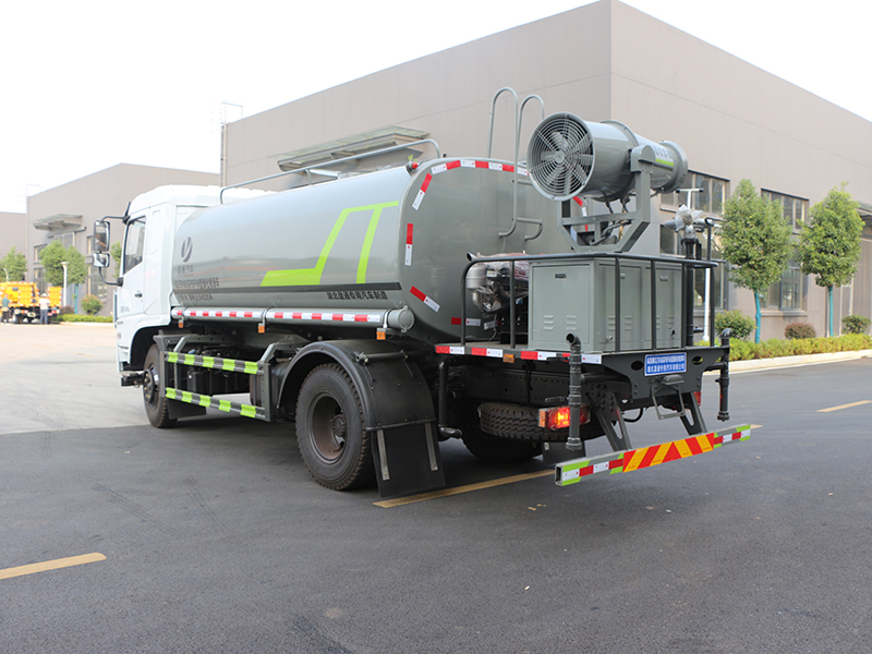 標準配置灑水車主要裝備有:前沖(沖洗公路路面)、后灑(公路路面養護)、側噴、高位側花灑(路邊綠化帶優化);后工作平臺高壓水炮,可調節成柱狀,射程≥28m;也可調節成霧狀,射程≥30米,水泵自吸高度:≤7m,灑水寬度:≥15m。側防護網,自流閥,消防接頭。灑水車水泵為常壓水泵,功能可以抽水、排水。另外根據用戶要求,可加消防泵、噴霧機、農藥卷盤、農藥柱塞泵。罐內可以做防腐防銹、電磁閥氣動閥自動放水等****,以滿足不同用戶需求。
