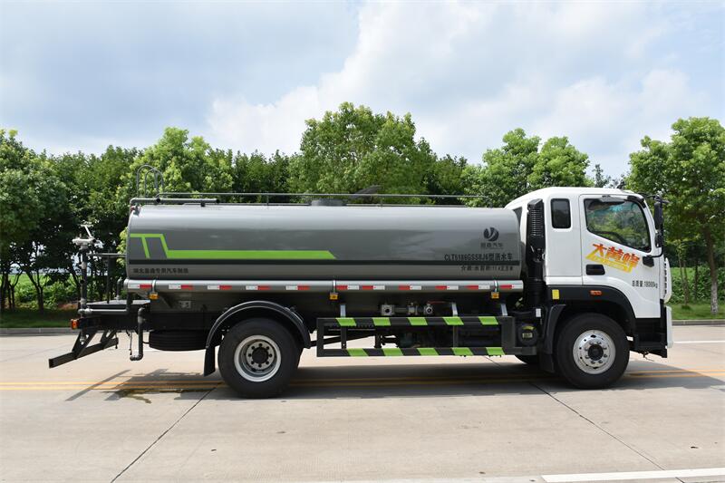 該車主要用于城鄉園林綠化,路面噴灑,除塵和降溫;主要裝置為罐體及噴灑裝置;罐體總容量:11.4立方米;罐體有效容積:10.86立方米;罐體外形尺寸(長×長軸×短軸)(mm):5200×2300×1400;4200×2300×1450;側、后防護材料均為:Q235碳鋼,連接方式均為:螺栓連接,后部防護截面尺寸(mm):120×50,后部防護離地高度(mm):470;ABS系統型號:ABS-VI.E;生產企業:廣州瑞立科密汽車電子股份有限公司.ABS系統型號:ABS-E;生產企業:威伯科汽車控制系統(中國)有限公司,ABS系統型號:3550D-1010;生產企業:東科克諾爾商用車制動系統(十堰)有限公司.采用3950mm,4500mm軸距。選裝尿素罐位置,選裝電瓶位置。選裝后部箭頭燈,選裝后部弧形噴灑裝置,選裝水炮支架位置,選裝自動球閥安裝位置,選裝前部水炮樣式,前伸為500mm,對應整車長度為8950mm,7950mm。