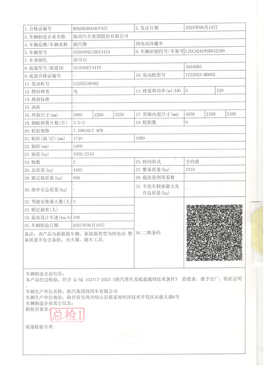 陜汽智云S300(K8-140.41度電)純電動冷藏車