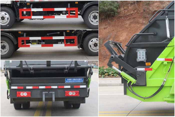 該車專用裝置為垃圾箱體及液壓系統裝置,主要用于垃圾的收集,轉運作業;選裝無上料裝置時無后伸,選裝密封斗裝置,擺臂裝時,后伸280mm,選裝翻轉機構,翻掛桶,三角斗時,后伸380mm.側防護材料為:Q235碳鋼,連接方式為:螺栓連接,后部防護為專用裝置代替,后部防護離地高度(mm):500.ABS系統型號:ABS-VI.E;生產企業:廣州瑞立科密汽車電子股份有限公司.ABS系統型號:ABS-E;生產企業:威伯科汽車控制系統(中國)有限公司;發動機D25TCIF1,D30TCIF1,F3.8NS6B156對應的油耗值(L/100km)為21.01,20.39,21.02.該車型可選裝直接供電ETC車載裝置.選裝樣車側面樣式.隨底盤選裝駕駛室.