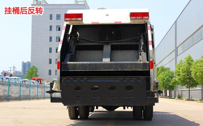 箱體容積可達5~6立方米,采用4mm碳鋼板材,由裝料機構、壓縮機構、卸料機構、液壓自購等組成,內有9根液壓油缸,底部有2個污水箱,后翻轉樣式根據客戶確認選擇。