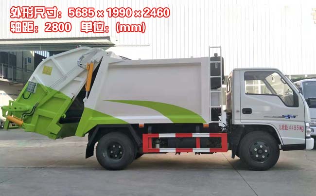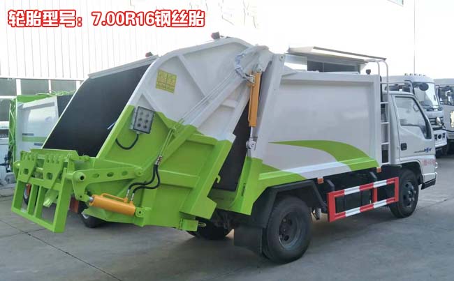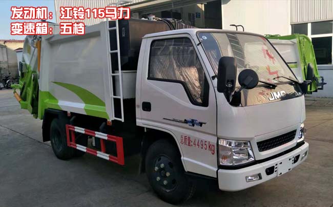 江鈴順達藍牌壓縮式垃圾車,江鈴順達原裝底盤,2800軸距,國五江鈴115馬力柴油電噴發動機(型號:JX493ZLQ5),五檔變速箱,方向助力,油剎,7.00R16鋼絲胎,ABS,空調。