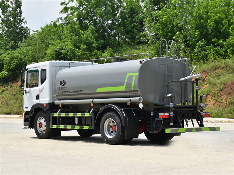 東風12噸灑水車產品標配前噴(鴨嘴)、后沖、后灑、側噴、后置式工作 平臺,平臺上配置綠化水炮(可 360°旋轉,既可以調成柱狀,也可 以調成霧狀,更可以調成直沖狀、大雨、中雨、小雨、毛毛雨),配 備優質大功率專用灑水泵(可自吸自排,可從河里或池塘抽水到罐體), 取力器,雜物過濾網,消防接口,自流球閥系統、取力器、球閥、濾網 均為國家標準產品,主管道加粗,法蘭墊、法蘭盤加厚,大通徑球閥。 整體具備性能優良安全可靠、效率高、流量大、維修方便等特點。