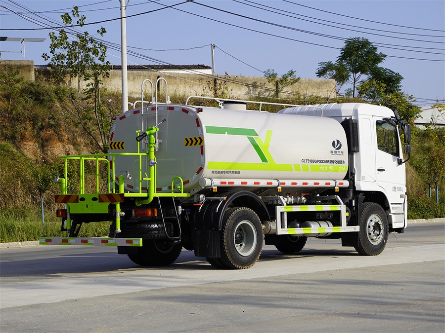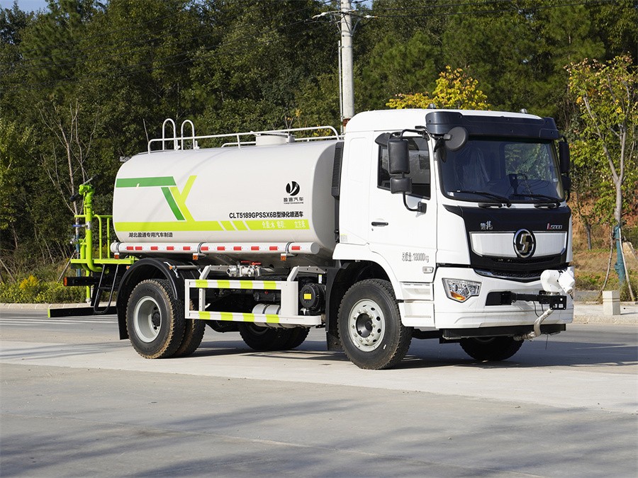 產品簡述:縱昂牌 CLT5189GPSSX6B 型綠化噴灑車 標配前噴(鴨嘴)、后對沖、 后灑、側噴、后置式工作平臺,平臺上配置綠化水炮(可 360°旋轉,既可以調 成柱狀,也可以調成霧狀),配備優質大功率專用灑水泵(可自吸自排,可從河 里或池塘抽水到罐體),取力器,雜物過濾網,消防接口,自流球閥系統、取力 器、球閥、濾網均為國家標準產品,主管道加粗,法蘭墊、法蘭盤加厚,大通徑 球閥。整體具備性能優良安全可靠、效率高、流量大、維修方便等特點