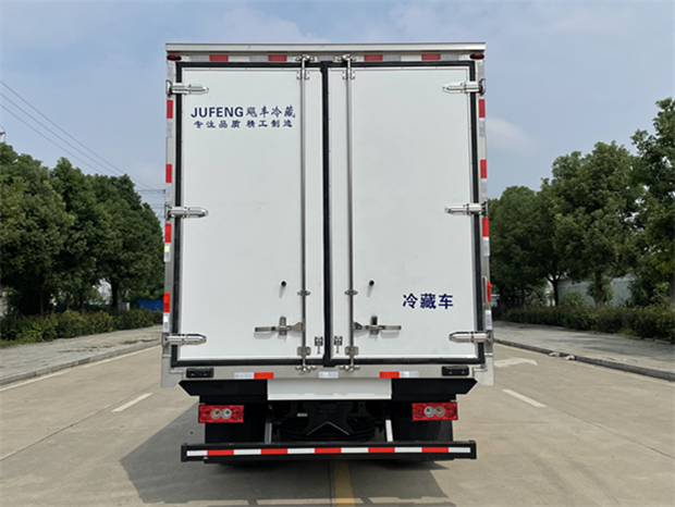 奧鈴排半5米2冷藏車廂體配置為:斷橋隔溫工藝,整體結(jié)構(gòu)框架,內(nèi)外面料為3mm新款啞光玻璃鋼夾保溫層真空復合而成,廂體厚度為8cm,最新款鋁合金包邊型材,型材局部厚度為4mm(鋼制鉚釘加固),廂體內(nèi)部采用2個LED照明燈及廂體示寬燈,后門框不銹鋼材質(zhì),門框密封條為三元乙丙橡膠材質(zhì),加厚型不銹鋼合頁及鎖件;副梁為Q700車用大梁鋼,15mm厚大梁墊皮,加裝防撞膠塊,不銹鋼門鎖件,配后雙開門,副駕駛一側(cè)居中靠前開單側(cè)門一個,帶2個排水孔。